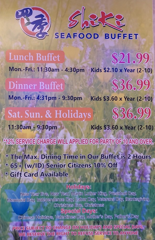 Introducing Shiki Seafood Buffet, a culinary haven located at 5535 Rosemead Blvd Temple City, CA. This casual yet vibrant restaurant offers a plethora of options including vegan and vegetarian choices, making it suitable for a variety of preferences. The extensive menu features delectable seafood, beef, chicken, pork, fish, sushi, sashimi, dim sum, Korean BBQ, and more. Noteworthy highlights include their succulent snow crab legs and well-prepared sushi with just the right rice-to-filling ratio. With spacious seating, attentive staff, and a welcoming atmosphere, Shiki Seafood Buffet is perfect for gatherings with family and friends. Indulge in a delightful dining experience, where flavorful dishes and swift service are served in abundance.